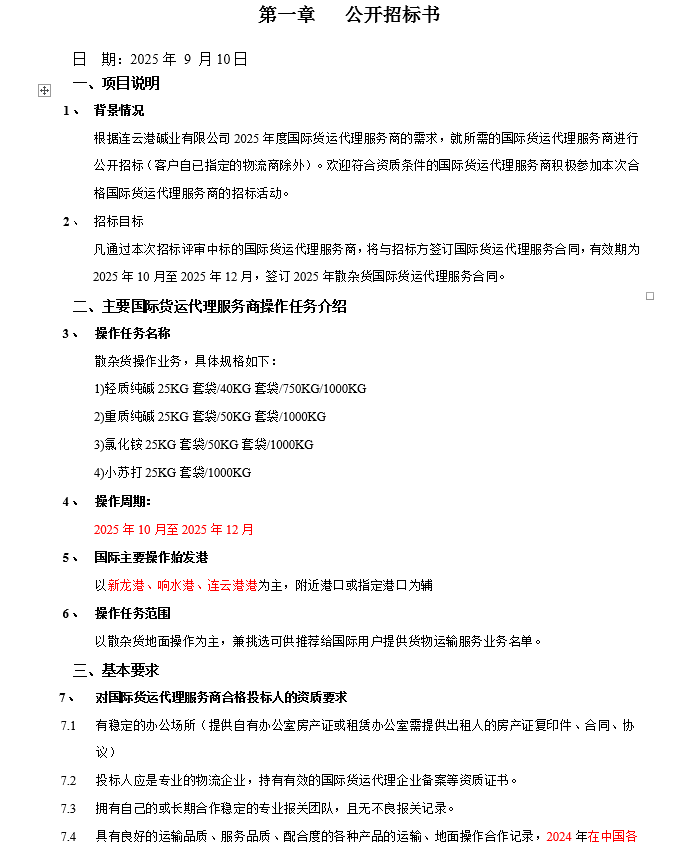 連云港堿業(yè)有限公司散雜貨國際貨運代理服務商項目招標公告